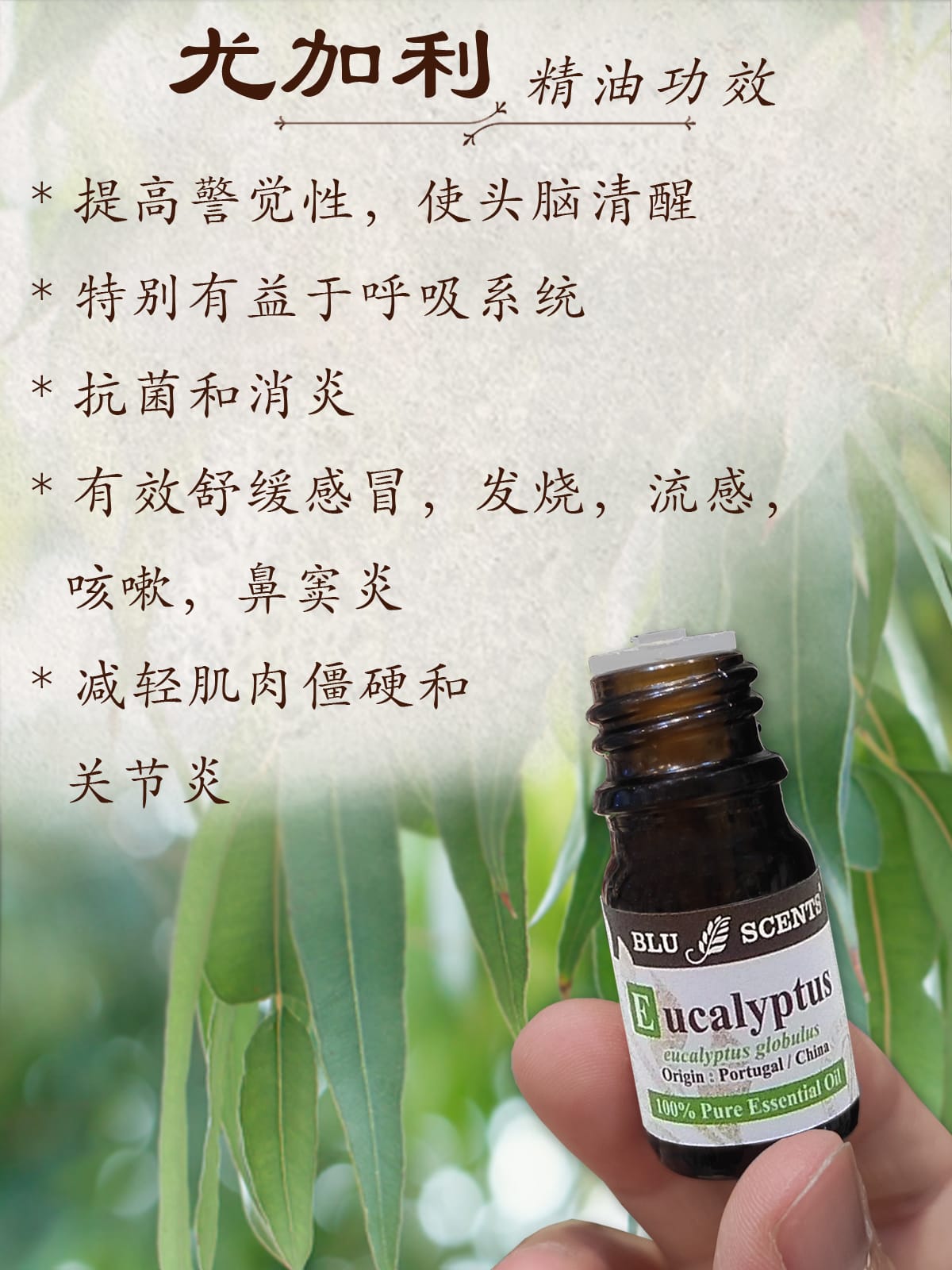 * 再滴几滴 尤加利纯精油,使空气清新、净化磁场 — 强效空气杀菌好帮手